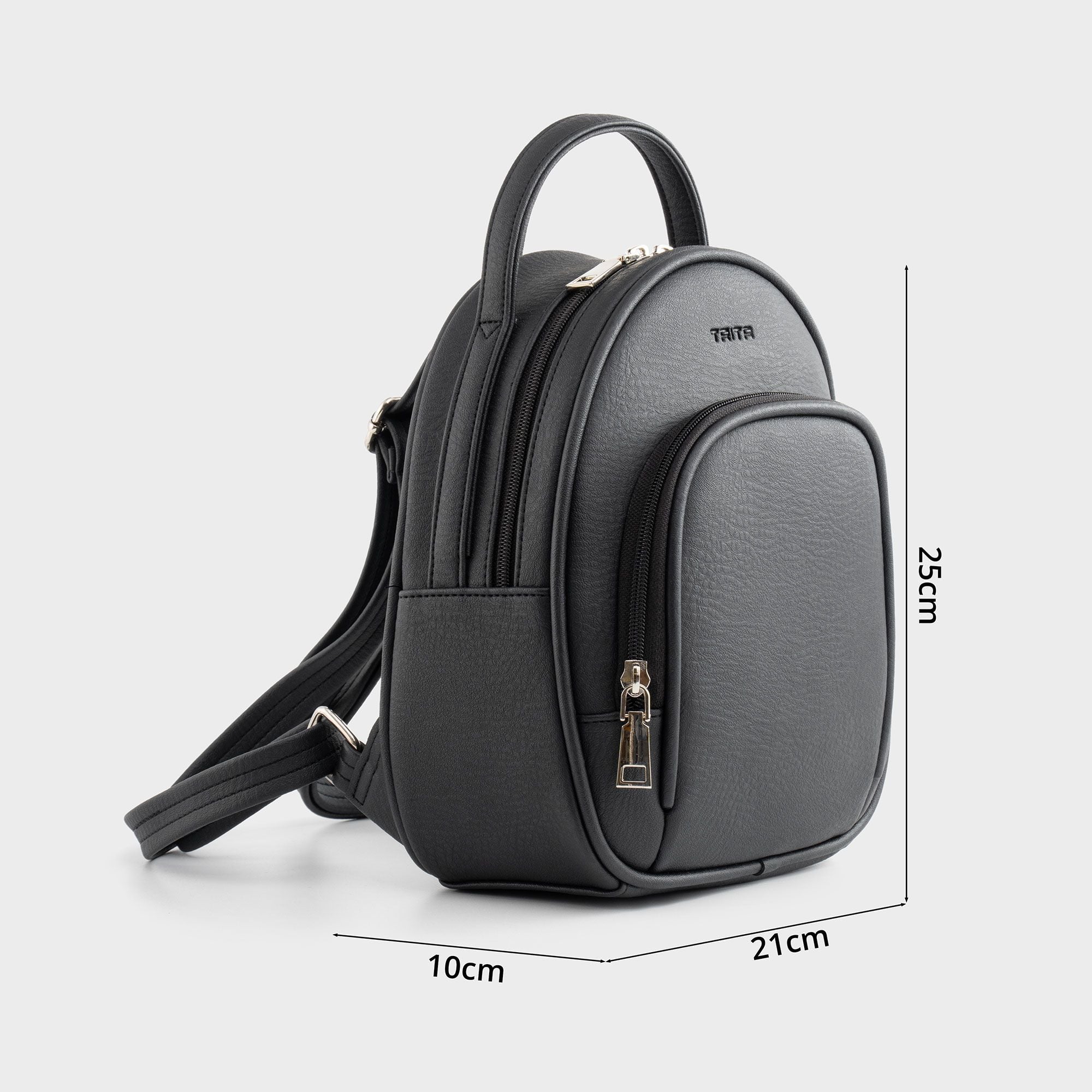 Balo Trita (Thời trang nữ phối ngăn phong cách basic cỡ trung - Balo da RBA91D) màu đen