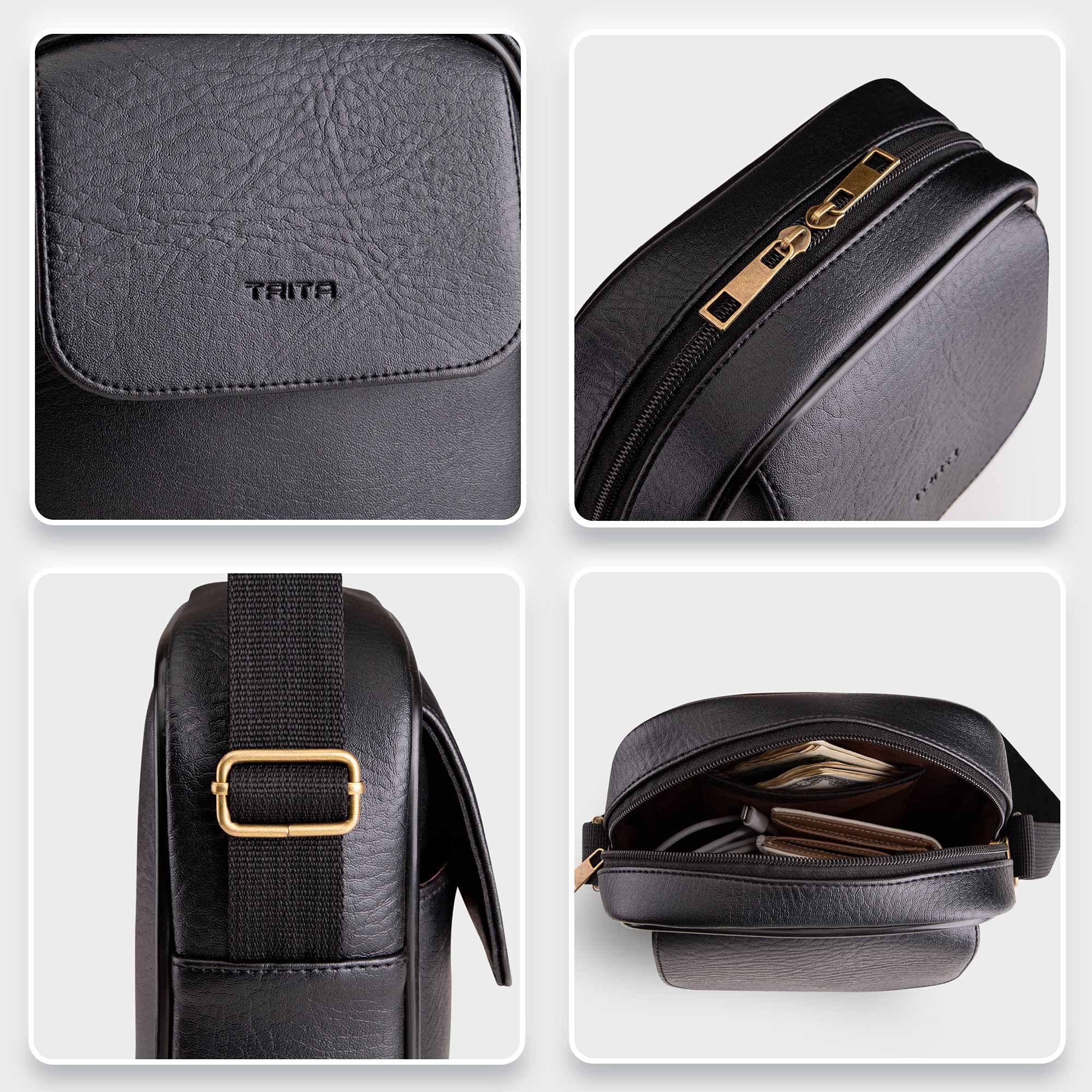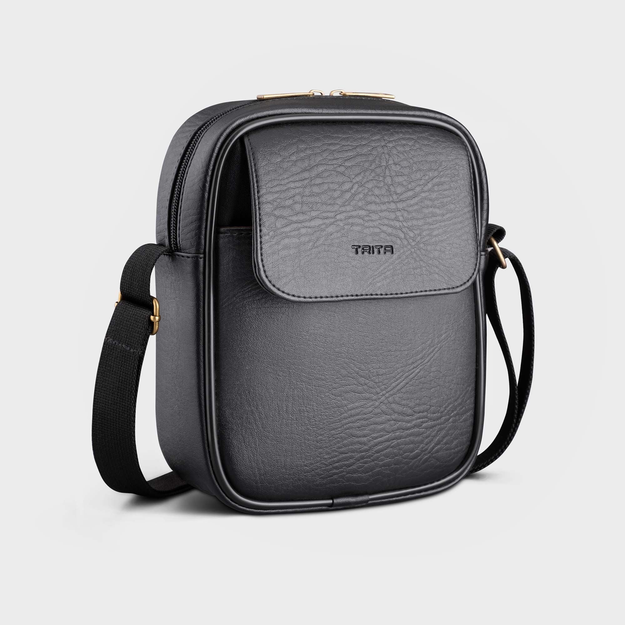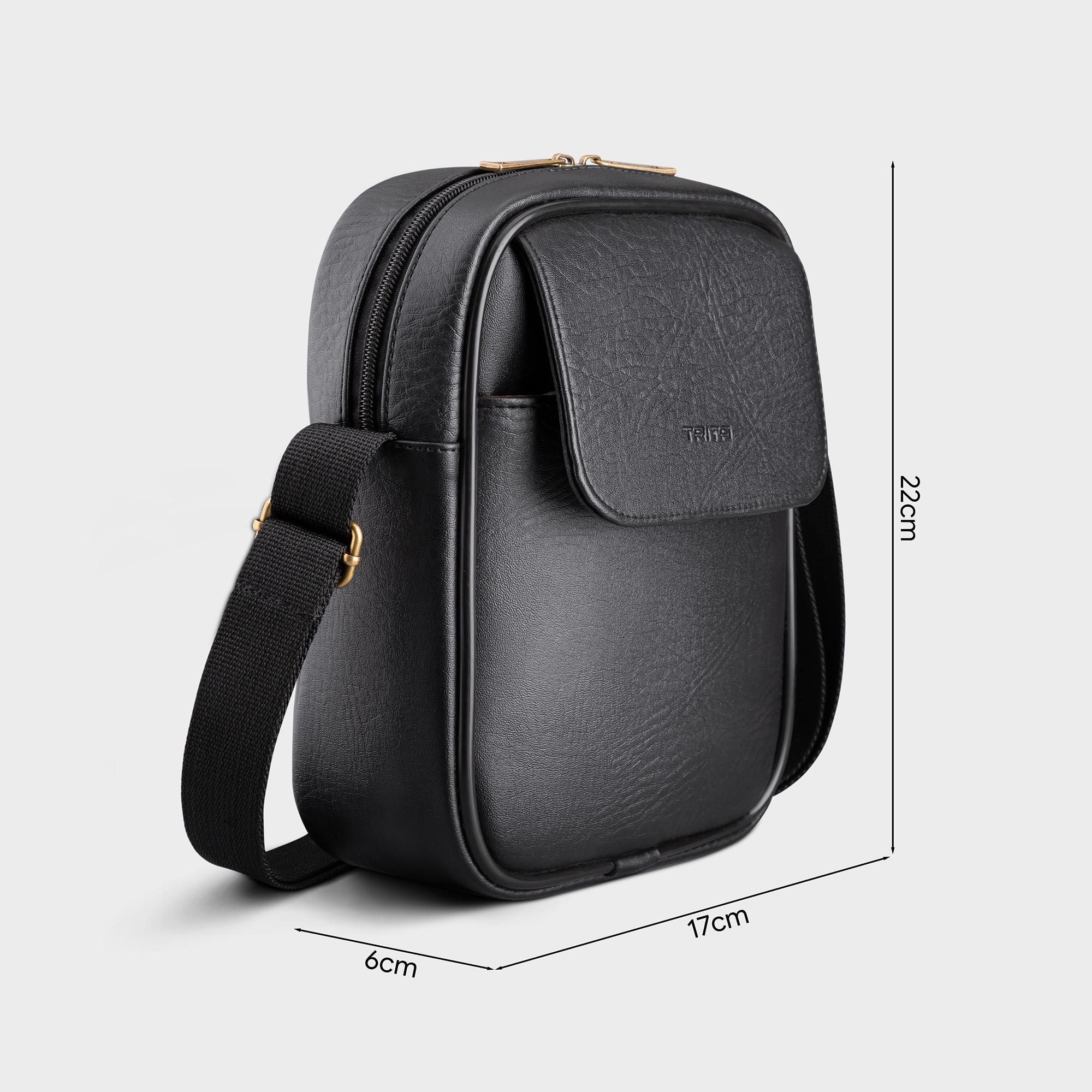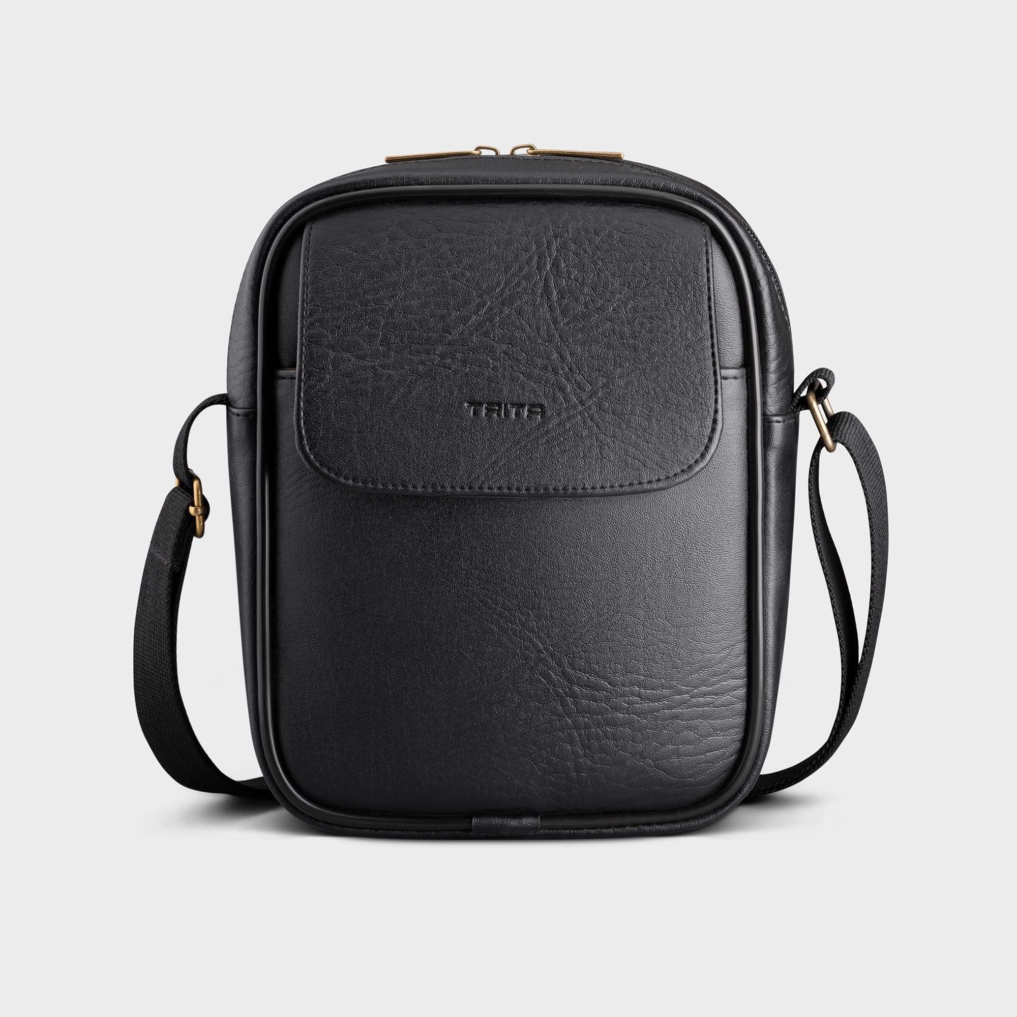Túi Trita (Thời trang nam phối nắp gập - Túi đeo chéo da RTN14D) màu đen