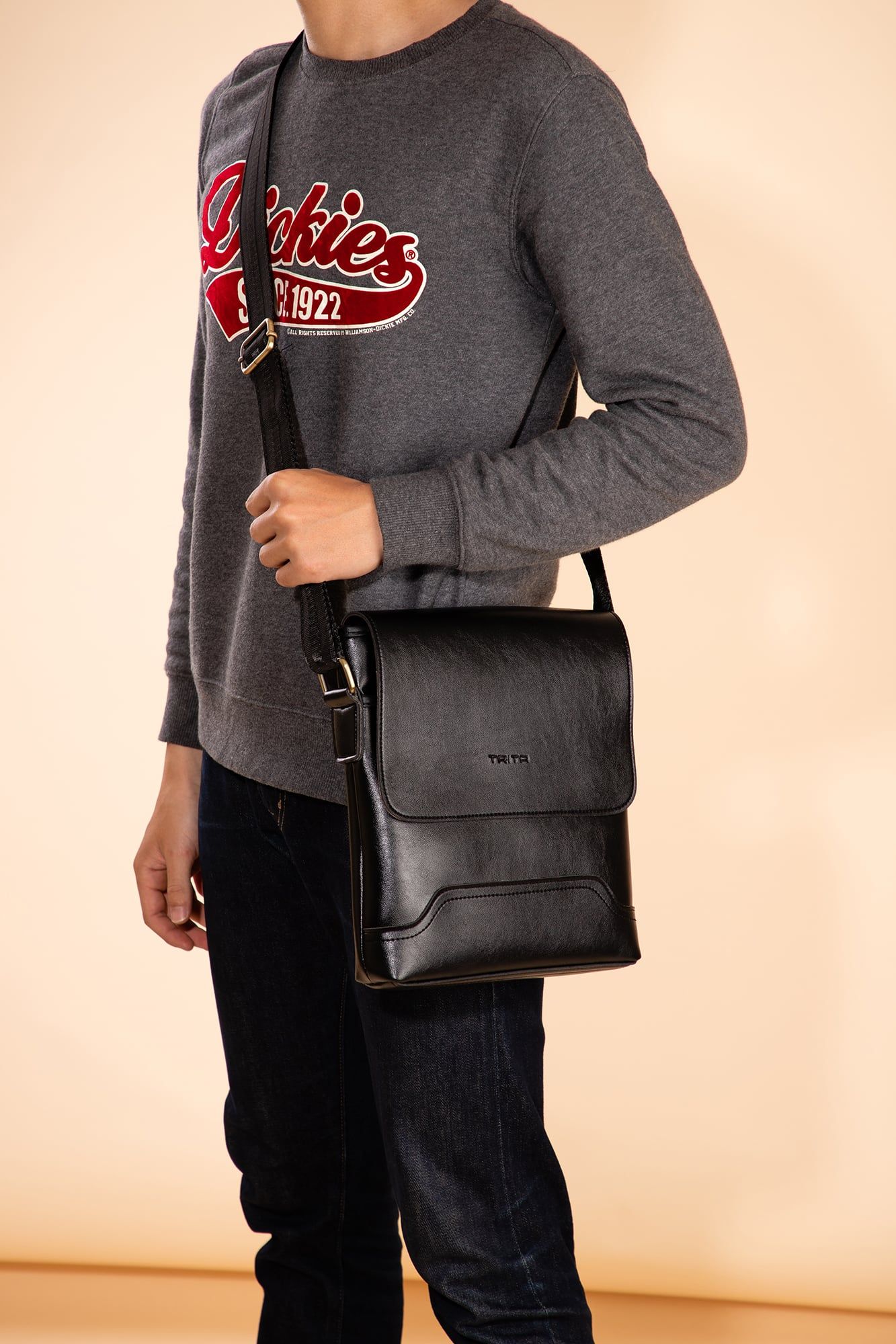 Túi đeo chéo nam Trita (Phối nắp gập thời trang RTN2D) màu đen
