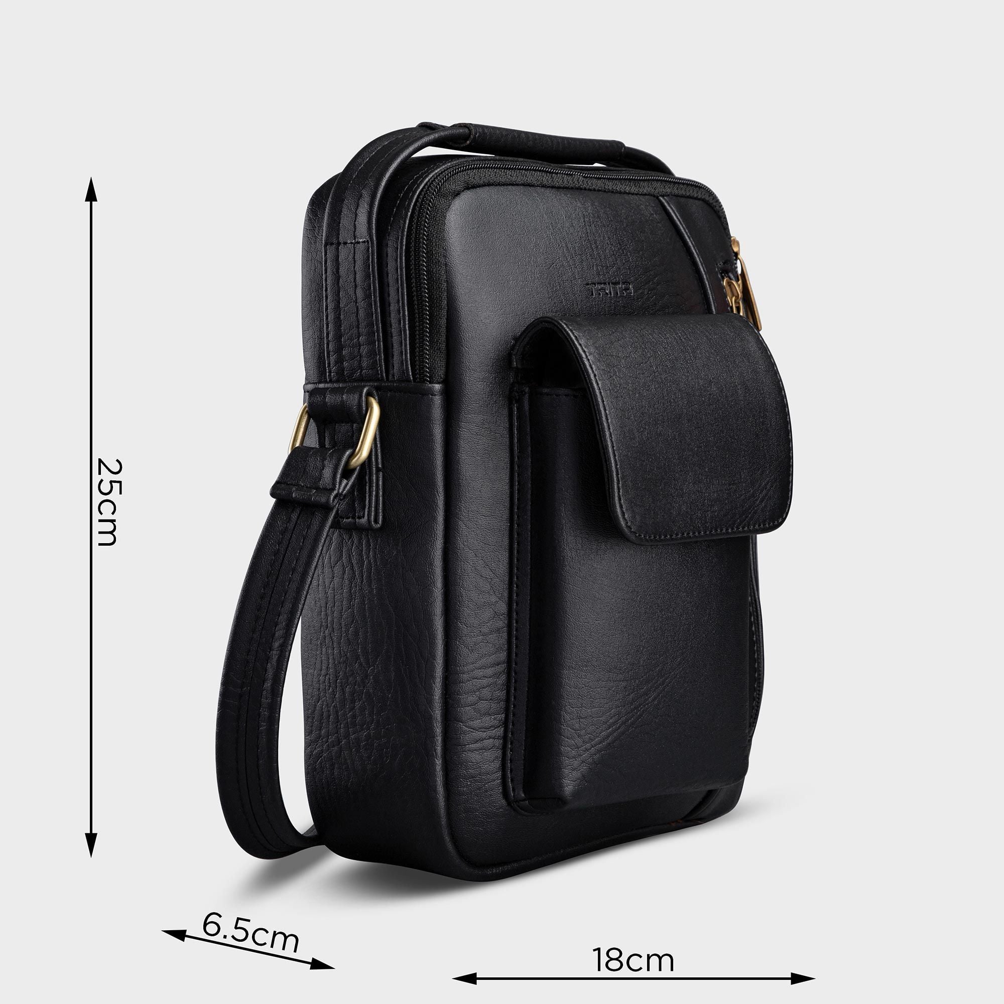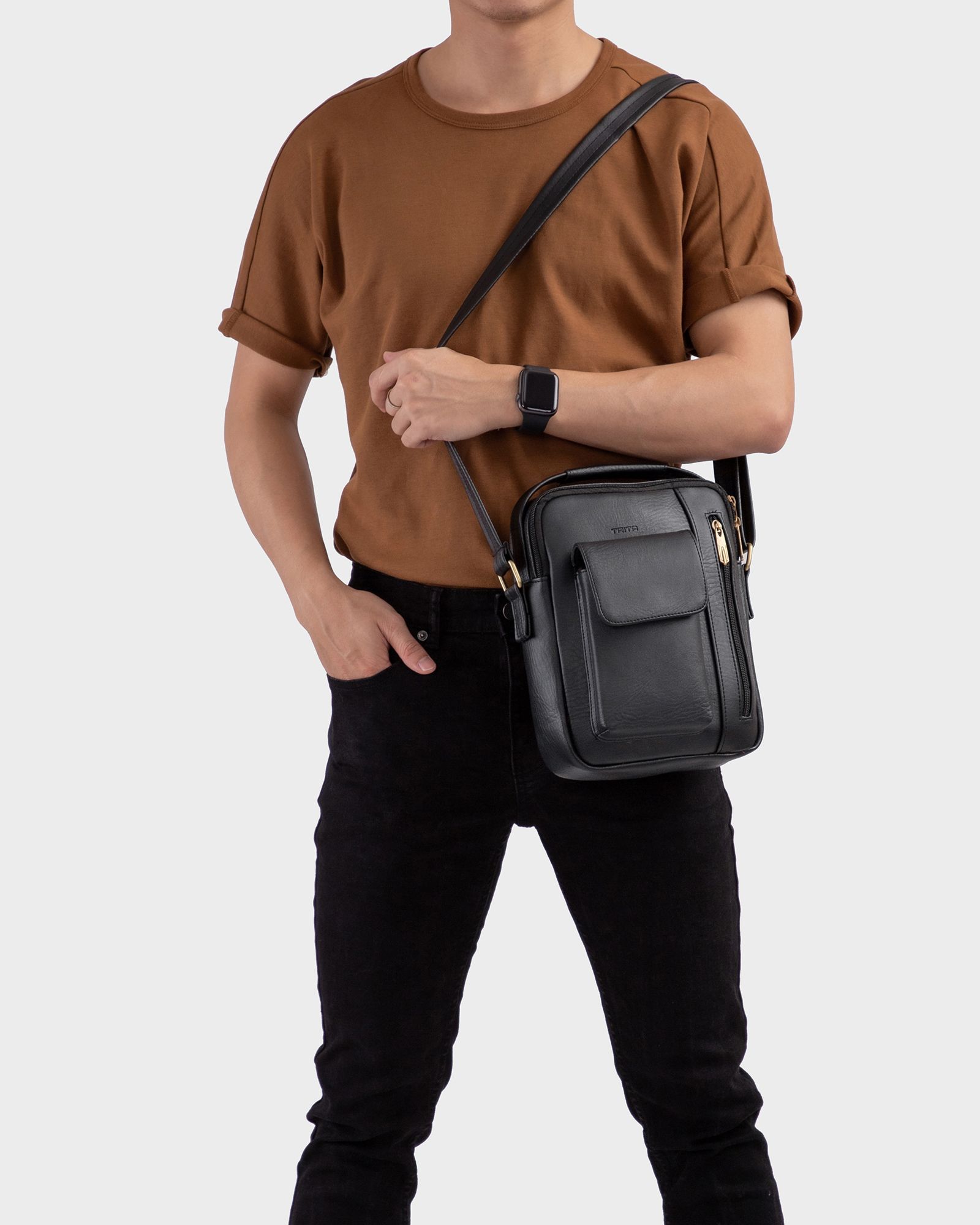 Túi Trita (Thời trang nam phối ngăn - Túi đeo chéo da RTN3D) màu đen