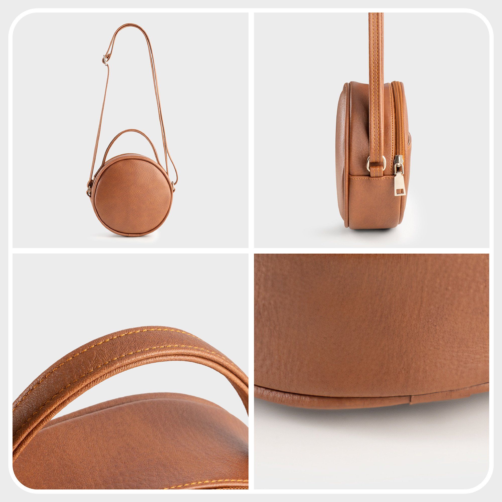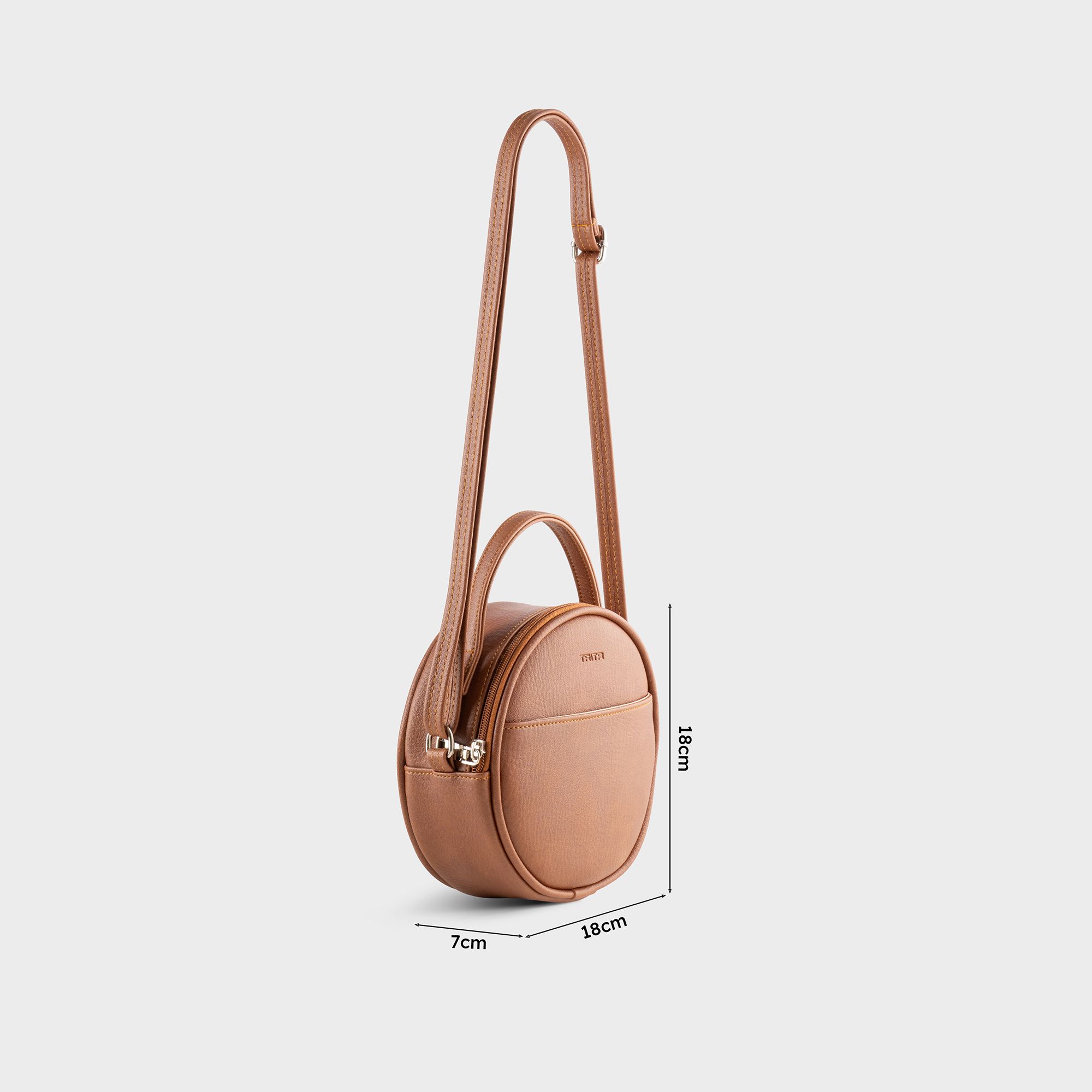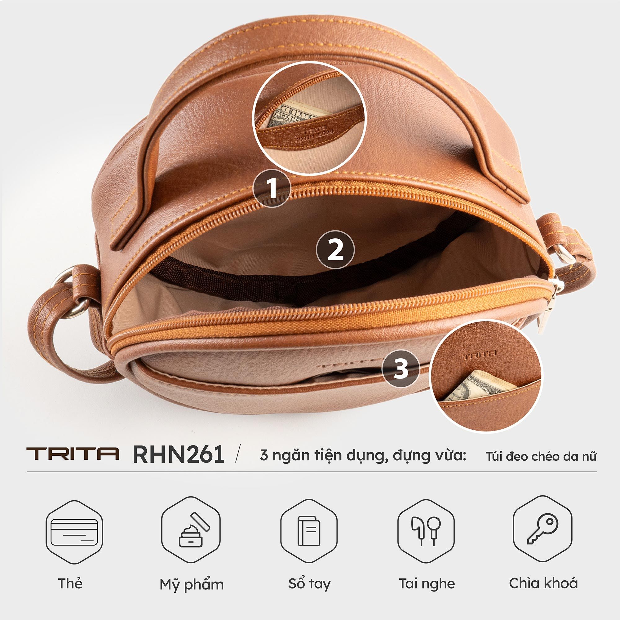 Túi Trita (Thời trang nữ dáng tròn - Túi đeo chéo da RHN261B) màu bò