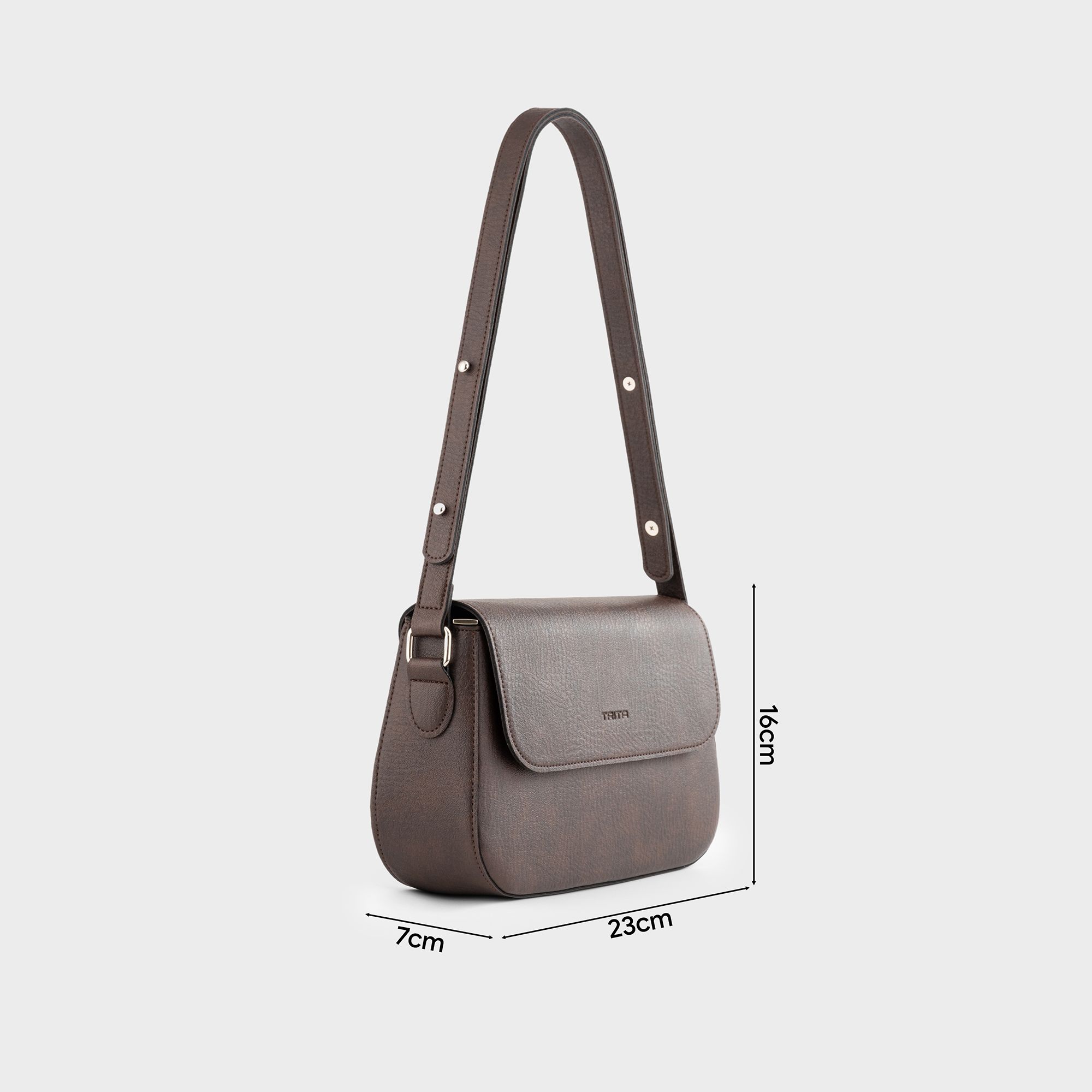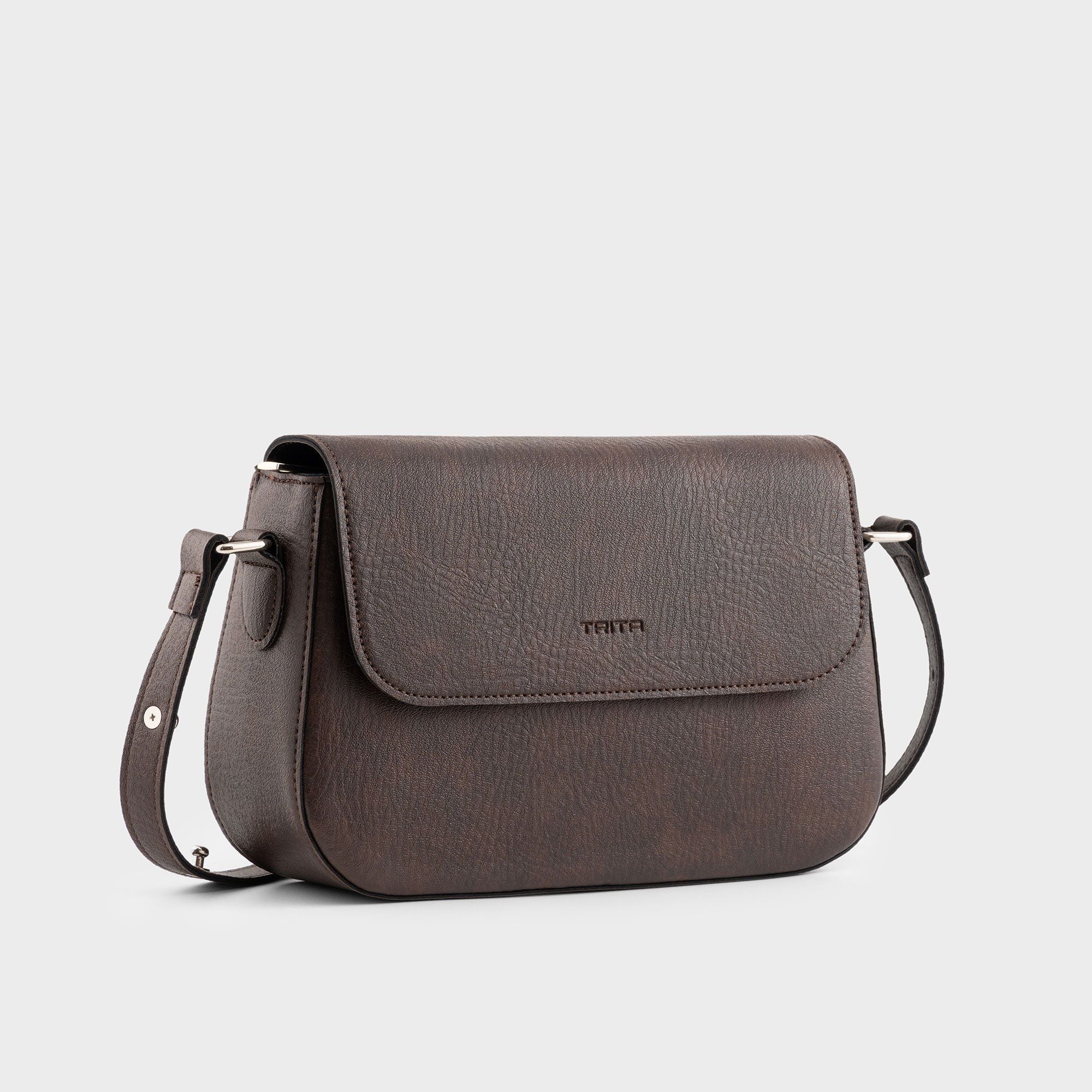 Túi Trita (Thời trang nữ dáng hộp nắp gập bo tròn viền size 23 - Túi đeo chéo da RHN162N) màu nâu