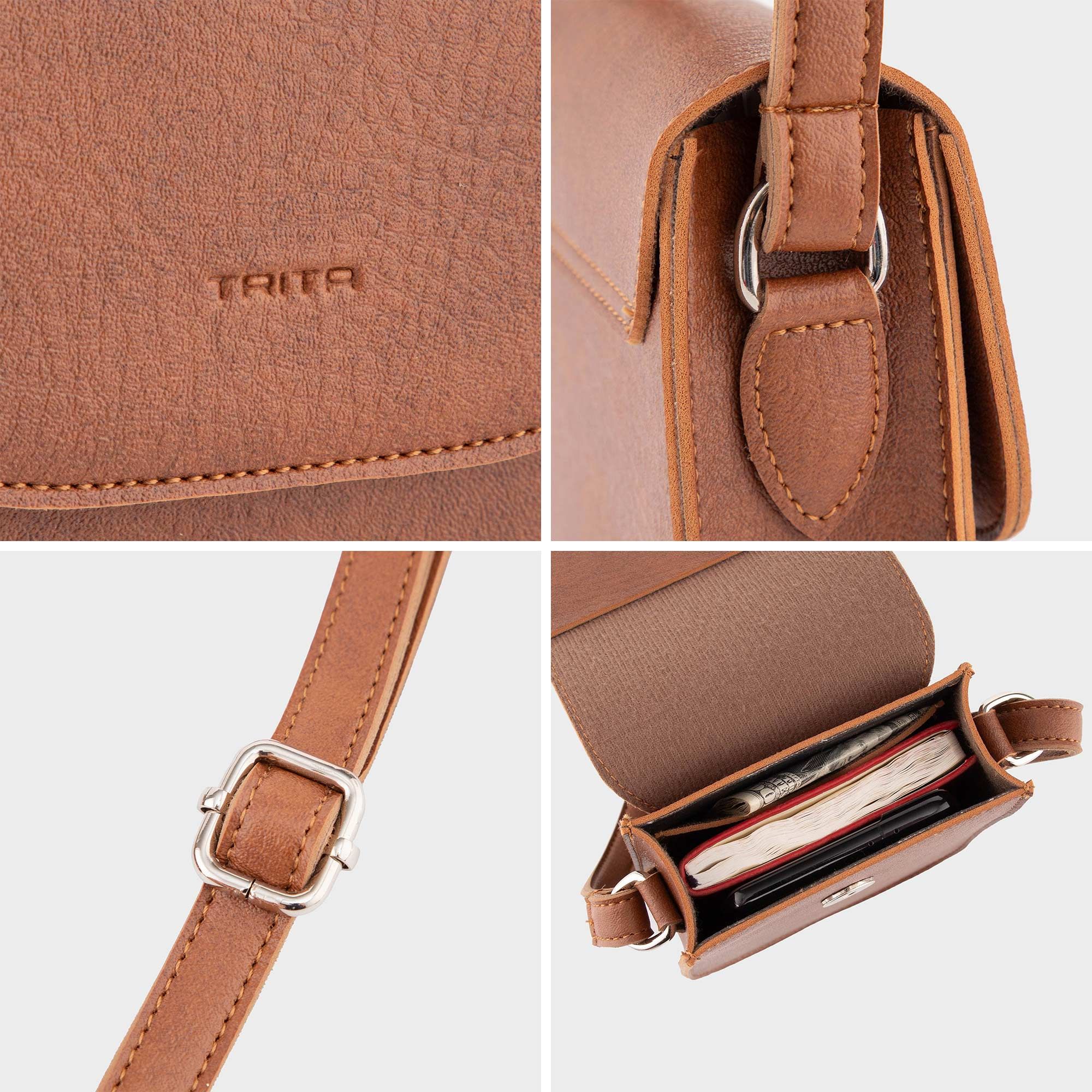 Túi Trita (Thời trang nữ dáng đứng phong cách cổ điển - Túi đeo chéo da RHN225B) màu bò