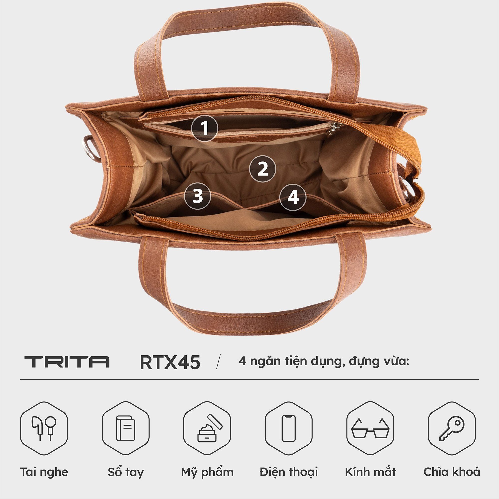 Túi Trita (Thời trang nữ kiểu dáng đơn giản cỡ trung - Túi xách da RTX45N) màu nâu